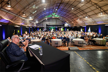 Na sequência, os diretores apresentaram um panorama atualizado do contexto econômico e social da cooperativa, trazendo análises sobre o impacto das grandes empresas que estão se instalando na região atendida pela Coprel. Também compartilharam os aprendizados da missão técnica realizada em outubro nos Estados Unidos, destacando tendências internacionais e os pontos em que a Coprel se posiciona à frente de muitas cooperativas norte-americanas. O bloco se encerrou com a apresentação dos resultados de uma ampla pesquisa realizada em parceria com uma universidade da região, que reafirma a solidez da imagem da Coprel e destaca o impacto social da internet no interior para a permanência do jovem no campo, evidenciando a importância dos investimentos da cooperativa em conectividade.