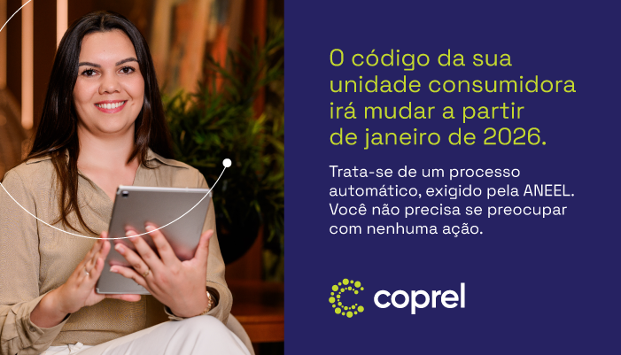 O código da unidade consumidora é uma das principais chaves de atendimento da Coprel.